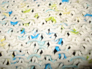 Day 2 Dishcloths Galore! This is a weave pattern where you slip every other stitch and then knit a row. Next row you knit two and then slip every other til the end. Knit another row and start all over. I love the way it looks and the extra slip stitches will make a nice cleaning surface.