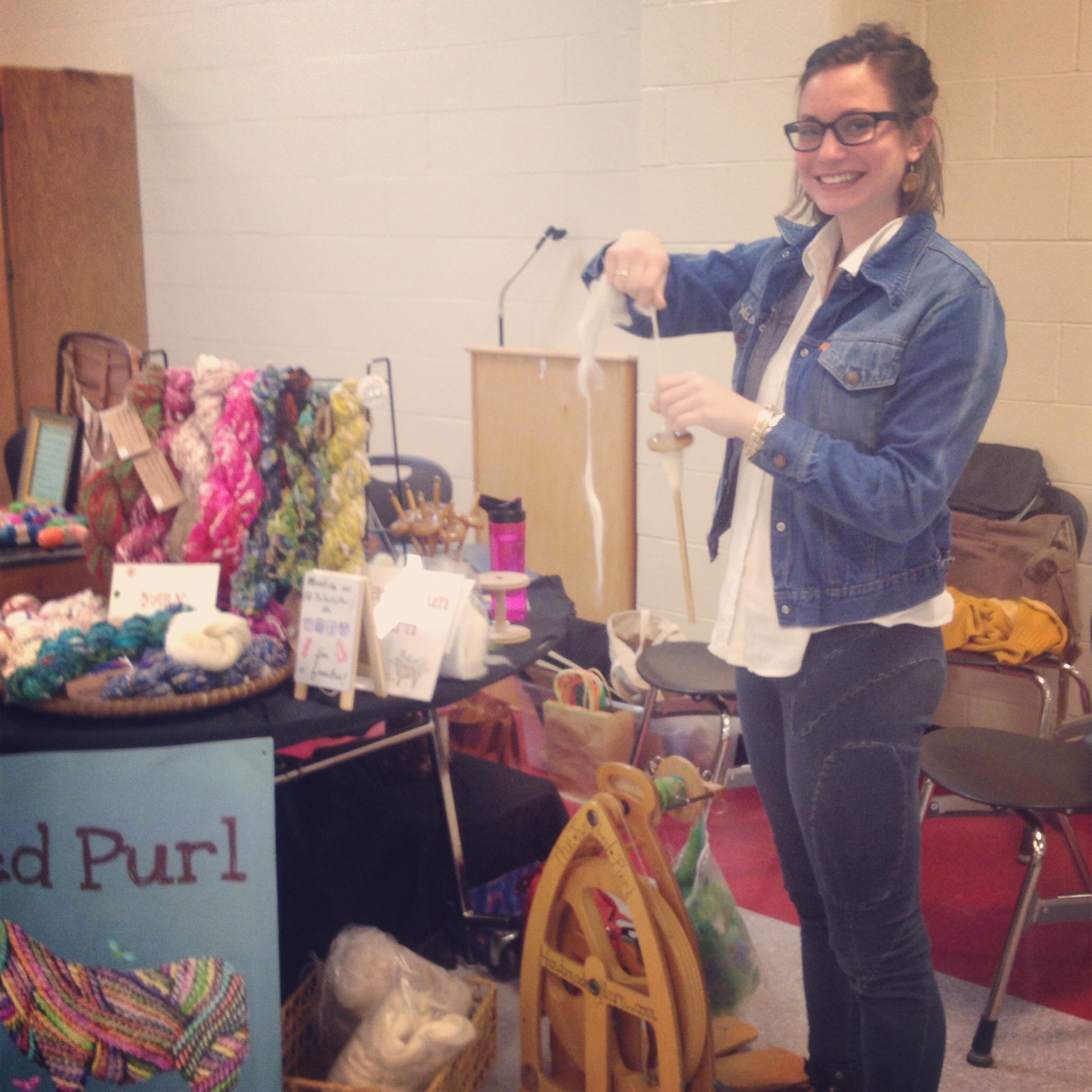 Well, yes, I helped Cyndi out at a show (my first–and it was fun and wonderful and I learned many-a-thing about talking to potential customers and eating cupcakes).          But also (!!!) I am now an upcoming spinner!  This is very exciting news, let me assure you.  Although I have not quite gotten the hang of it, now that I’ve started learning, I doubt I’ll stop.