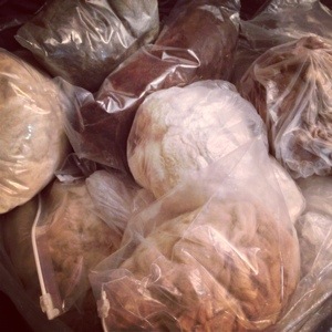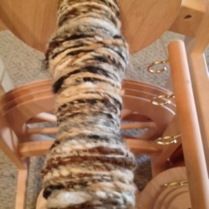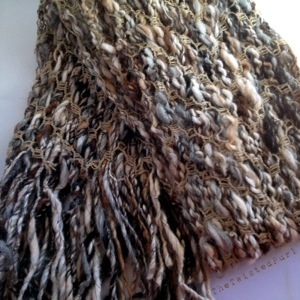 Alpaca from Sweet Clover AlpacaEarly this spring, I had the amazing opportunity to attend Sweet Clover Alpaca’s shearing day.  I really got to know these adorable animals and their gracious owner.  I’ve fallen in love with the unbeatable softness of the alpaca fiber.  Look at all that cuteness…Aww!Cute AlpacaI came home with bags and bags of alpaca.  (Bags and bags and bags)  Thinking oh yeah, I can spin this up in no time flat.  Ha!  If only all I had to do all day was spin, then maybe. Look at all the colors and did I mention the softness.  Yum!!!Bags of AlpacaThe idea of being able to spin local alpaca was so delicious.  Alpaca raised right here in Conway and then turned into handspun yarn here too. Talk about keeping it local!  There’s no better way then this.Basket of AlpacaPictured above is a basket of the large variety of the colors found naturally in Alpaca.  I took the basket of fluff and blended it together through my drum carder to mix all the colors.Alpaca Fibers Blending on a Drum CarderThe fibers are blended on my drum carder to become a carded batt.  Carded Batts are easier to spin.  The drum carder lines all the fibers up going the same direction which makes spinning on a spinning wheel faster and smoother.  Plus, although alpaca are a whole heck of a lot cleaner than sheep, the drum carder helps remove excess hay and dirt before spinning.Alpaca Fiber Spinnig on WheelThis is the yarn on the spinning wheel being turned into handspun yarn.  First the yarn is spun directly from the carded batt to fill up the bobbin.  The fiber goes through the spinning wheel once, it can then be considered a finished single ply yarn.  I like to ply my yarn either with a strong thread to add texture, or with itself depending on the colors.Handspun Yarn made from Arkansas AlpacaAbove is the finished alpaca yarn.  After this step, the yarn has is rinsed and the twist is then set.  Being this fiber is directly from local fiber, some hay and dirt is completely washed and cleaned from the yarn.  Although a lot of the extra stuff gets pulled out while spinning, the yarn gets a good rinse to remove any excess dirt and barnyard.Alpaca Handspun Yarn turned into a ScarfHere’s a finished scarf made with the above alpaca.  It was hand weaved. Simply divine to touch!  Wrapping up with this on a cold winter’s day would be the best! That’s the entire journey: farm to fluff to carded batt to spinning wheel to yarn then finally into a scarf.Alpaca Weaved Scarf up closePictured below is Caspian, another Sweet Clover Alpaca.  He was a Cria (which is a baby alpaca) and I was fortunate enough to watch his first shearing and buy the coat.  His fiber was so fine and full of fun crimp.Alpaca into YarnThe yarn spun into what looked like a boucle style yarn, with little wispy curls all around. Handspinning AlpacaSince he was such a little guy, there were only two skeins of yarn made from his gorgeous first coat.20131008-071256.jpgHere are a few more skeins of finished alpaca.  The all natural colors are perfect.Four Skeins of Beautiful AlpacaThis last one has a touch of added bling with sequins on the thread.Handspun Alpaca with added blingPlease let me know if you have any questions. I’m working on putting together a few more “This is how it’s done” type of posts.  I tend to ramble on and on about spinning and carding and felting and realize a lot of you do not know the variety of steps or even what the heck I’m talking about.  Here is a earlier post with a video showing how fiber goes from fluff into yarn using all the tools mentioned above.