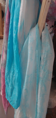 On Monday I dyed. A lot. I had some yarn that looked a bit like a Hawaiian lei so I did some in red, white, and blue, also a different set in rainbow. I dyed up some silk yarn and also some blue sock yarn. The blue sock yarn is every shade of blue I had premixed in my dye cabinet. It turned out nice, and I can’t wait to see it reskeined. Today I had my slave driver friend, Jeanetta come over and help me play with all the silk scarves I ordered. We dyed 20 things! All that is pictured is the scarves. Once the bags dry I will be sure to share. Some of them turned out fantastic, others look a little like mud was slung across the dye room, but ahhhhh well…it was fun to have four hands!