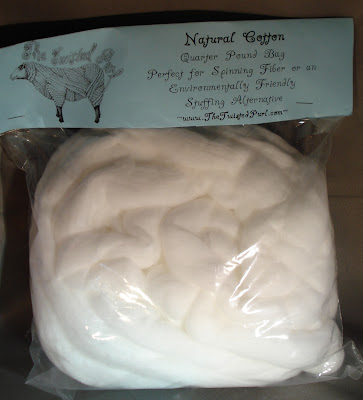 Save the Planet, use cotton as stuffing. Several months back, I stumbled upon some cotton, and by some I really mean LOADS of it. Pounds and Pounds of cotton that filled up one of my closets. The plan was to spin it, but I really have much more than I ever will need or be able to use. Jeanetta, took some and tested it out as an Environmentally Friendly stuffing alternative and has found it stuffs beautifully!