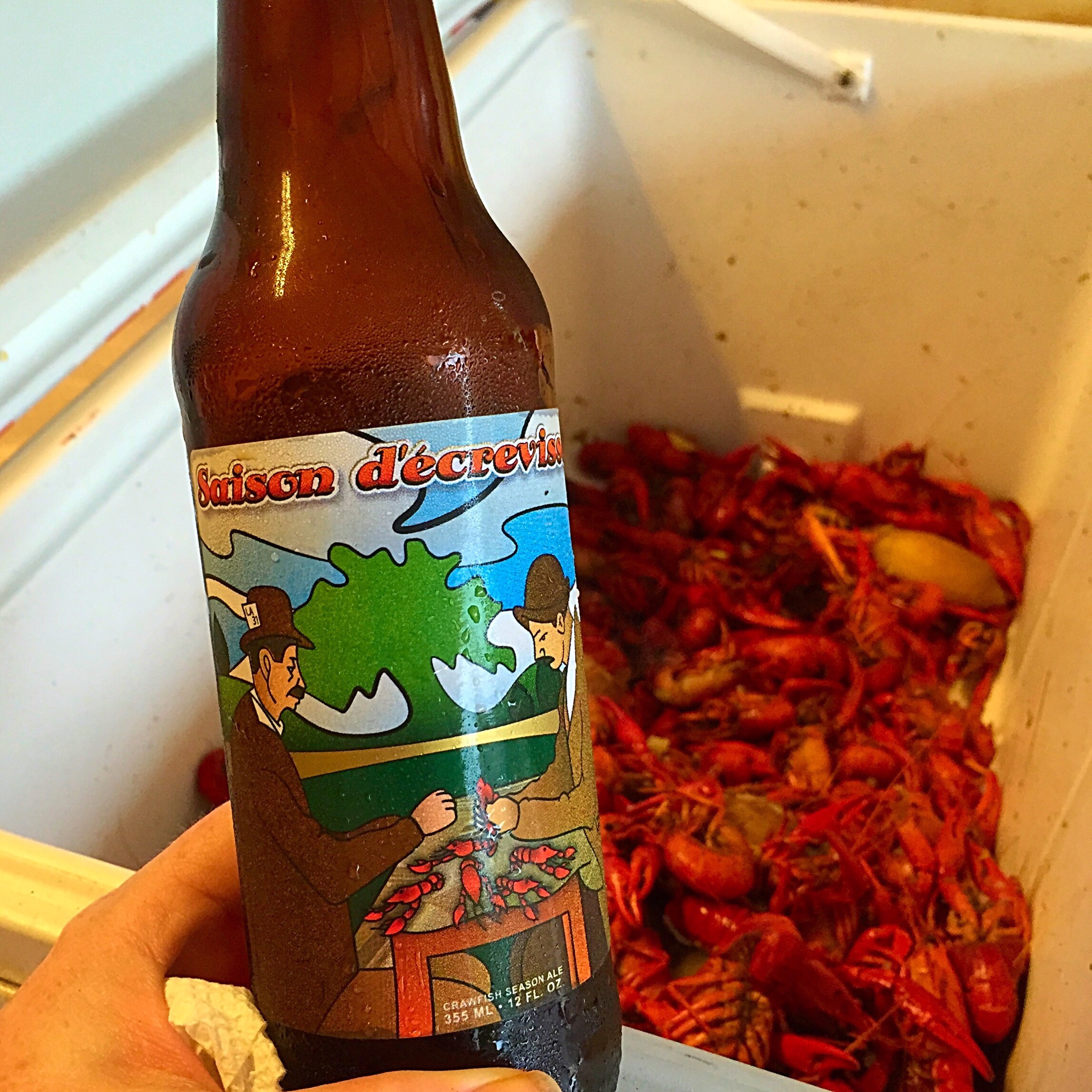 Needing to BYOB, we stumbled upon an excellent liquor store in Sherwood. Thank you Siri. 107 Liquor rocks! Their staff is super friendly, knowledgeable, and helpful. We mentioned heading to a Crawfish Boil and they recommended a beer made in old crawfish boiling pots with the seasoning. Saison d’écrevisses. Perfect compliment to the feast.