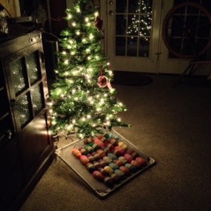 A small tree is up in my living room with new ornaments being added as fast as I can make them. Felted Soaps are drying under the tree. I’m singing Christmas Carols as I spin up Christmas themed yarns.