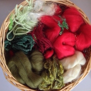 I love to share the steps of the handmade journey with you and this new yarn journey is exploding with Christmas colors and texture. Here’s the “Basket of Fluff”: