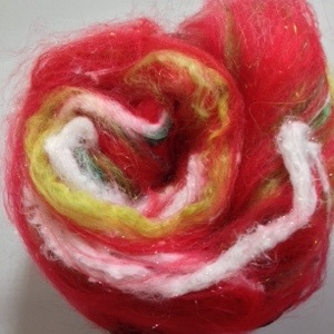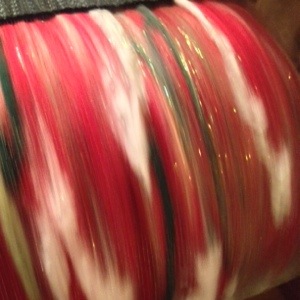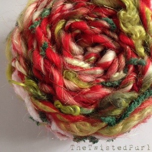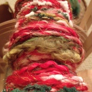 Along with my standard handspun yarn, felted soaps, and other fiber creations for Dazzle Daze I’m making a few ornaments. That’s the plan for this yarn. Funky textures and Christmas colors for uniquely handmade ornaments.