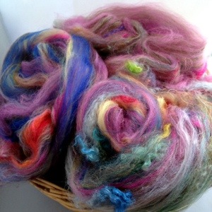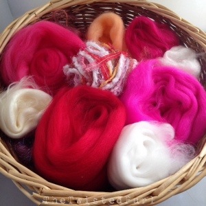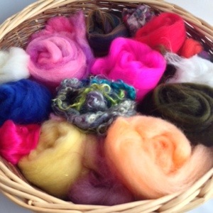 One more made this last week too! This one was a demonstration for Kate to show her how the drum carder and spinning wheel work. Here’s the basket of fluff: