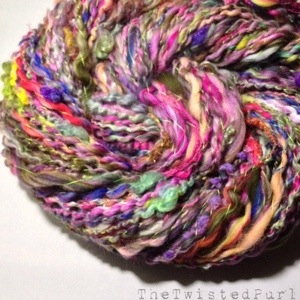 Because I was sharing the process with Kate, I missed taking a photograph of the carded batt. Below is the picture of the finished yarn: