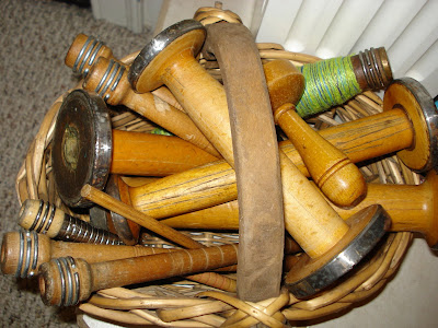 Dad and Deb have been collecting old yarn bobbins for me over the last six months and gave them to me for a birthday present. One even still had yarn attached…super cool!