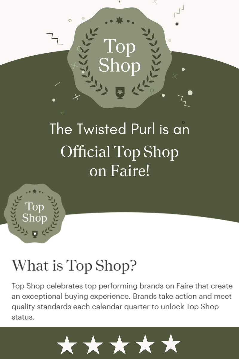 We’re a Top Shop on Faire—yay! That means you’ll get fast shipping, quick replies, and top-notch products from the Twisted Purl. With 200+ retailer reviews and a 4.9⭐️ average, we’re here to make you happy and keep those 5-star vibes going.
