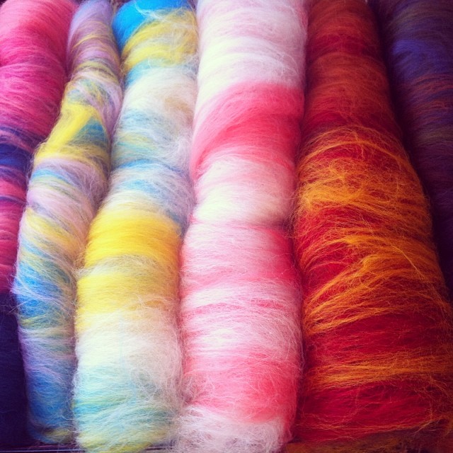 I hope you all read my introductory post that Cyndi posted earlier in the week. I’m excited to have everybody along side me through my Twisted Purl journey. I’m just finishing up my first week as an intern at The Twisted Purl, and can’t be happier that I was selected for this amazing opportunity. I’m already learning so many new terms, and learning how to make so many new things. I don’t know how many of you guys know what a carded batt is, or what a drum carder does, but I sure didn’t before this week. Next week I get to learn how to dye fibers, and maybe will get to learn how to spin on a spinning wheel, woo! Right now, all I know is that I’m sure I’ll know a little more about spinning past my current knowledge (provided by Sleeping Beauty, of course.)