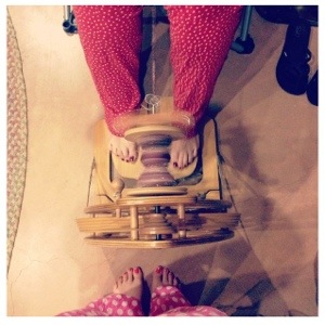Liz snapped a cool shot of the spinning process. Spinning in my pjs.
