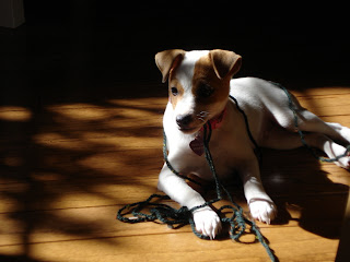 Our little Daisy Mae…I turned my head for one minute and this is what I found. She had grabbed a tail of yarn hanging off my wrapping table. Thankfully, it wasn’t hand painted and it wasn’t anything that was too big of a deal.