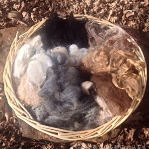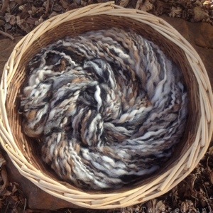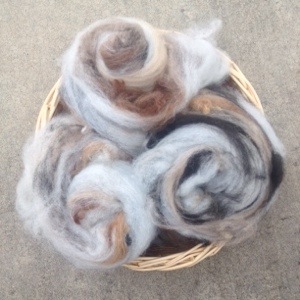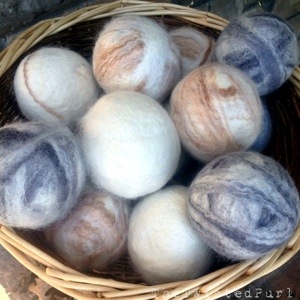 This week, I’ve received a custom order for an all natural, alpaca scarf.  Alpaca naturally come in a variety of beautiful colors.  Here’s the basket of fluff, containing a good color mix of alpaca.  All Natural Alpaca Variety ColorsI’m particularly found of this alpaca. It came from my favorite local alpaca farm, here in Conway.  Once I picked free the few pieces of hay remaining in the fiber, I blended the colors together through a drum carder.  Below are the carded batts created.Carded Batts All Natural AplacaThe fiber then went through the spinning wheel and turned into a new all natural alpaca handspun yarn.All Natural Aplaca Handspun YarnFinally, below is the finished scarf.  This was a custom order and will be given as a birthday present next weekend. Hope she loves it!Finished Alpaca ScarfFinishing up the week on a natural note, I made several new sets of wool felted dryer balls.All Natural Dryer BallsLots of exciting things are coming up in the next week.  We have a new intern starting on Tuesday!  Zoe is starting back on Thursday too. 🙂 Lots of new goodies are coming your way.