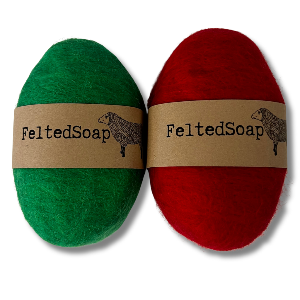 Looking for the perfect Stocking Stuffer or little gift for the Holiday Season? Check out these 2 packs of Solid Red and Green Felted Soaps.