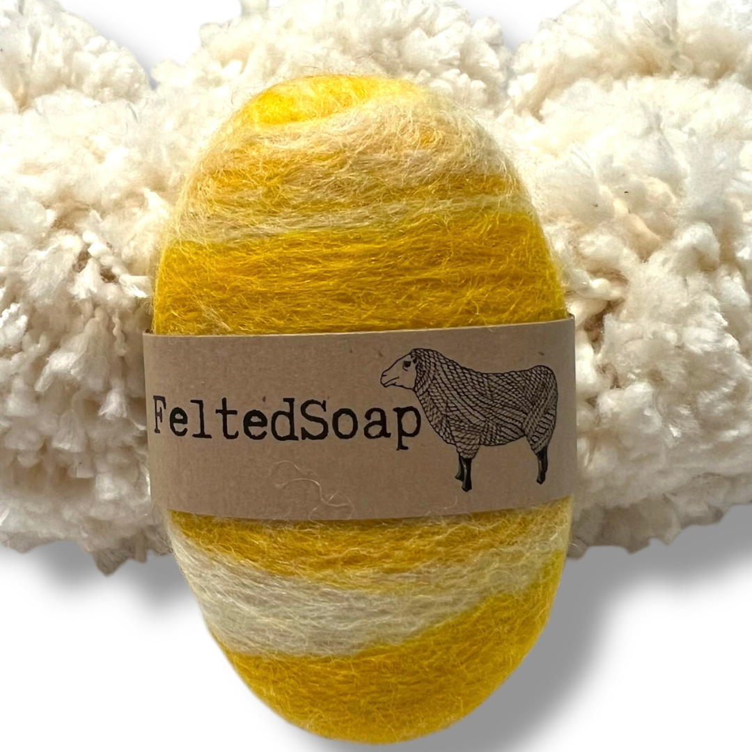 Felted Soap is an exquisite gift for yourself or to give to someone else. There is no need for a washcloth or loofah. Take your new felted soap into the tub or shower and it gently exfoliates your skin. During use, soap comes through and the wool will continue to shrink around the soap until you are left with a little scrubby, perfect for use during cleaning.