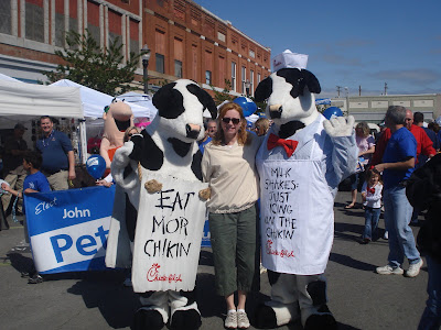 A parade went by the booth while Debbie was helping. She has this strange history of taking her picture with the Chick Fillet Cows…not sure why…but next thing I knew I had my camera in hand and we were stopping the parade for a quick photo shoot.