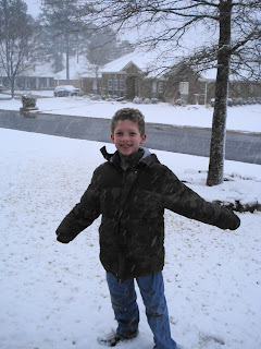 We woke up on Tuesday morning to actual SNOW! It was super exciting for this California girl. Being from Fresno, the closest thing to snow we ever got was fog. Yeah, I know, it’s not close. Drew and Austin were thrilled to find out school was canceled. At 6:30, I went into Drew’s room and opened up his blinds. He looked out and yelled “SNOW!!!!”