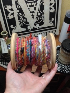 196 yards…folks for me and my normal super bulky yarn was an accomplishment. I really love the look of this one! Most likely after Spinzilla Week I’ll go back and thread ply it to make it even more fabulous. 😉