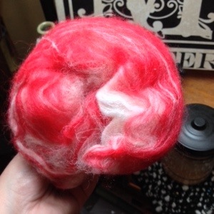 Knowing I had to get quite a few soaps felted, I had to make the most out of my last spin of the day. This one reminded me of a Christmas Peppermint.