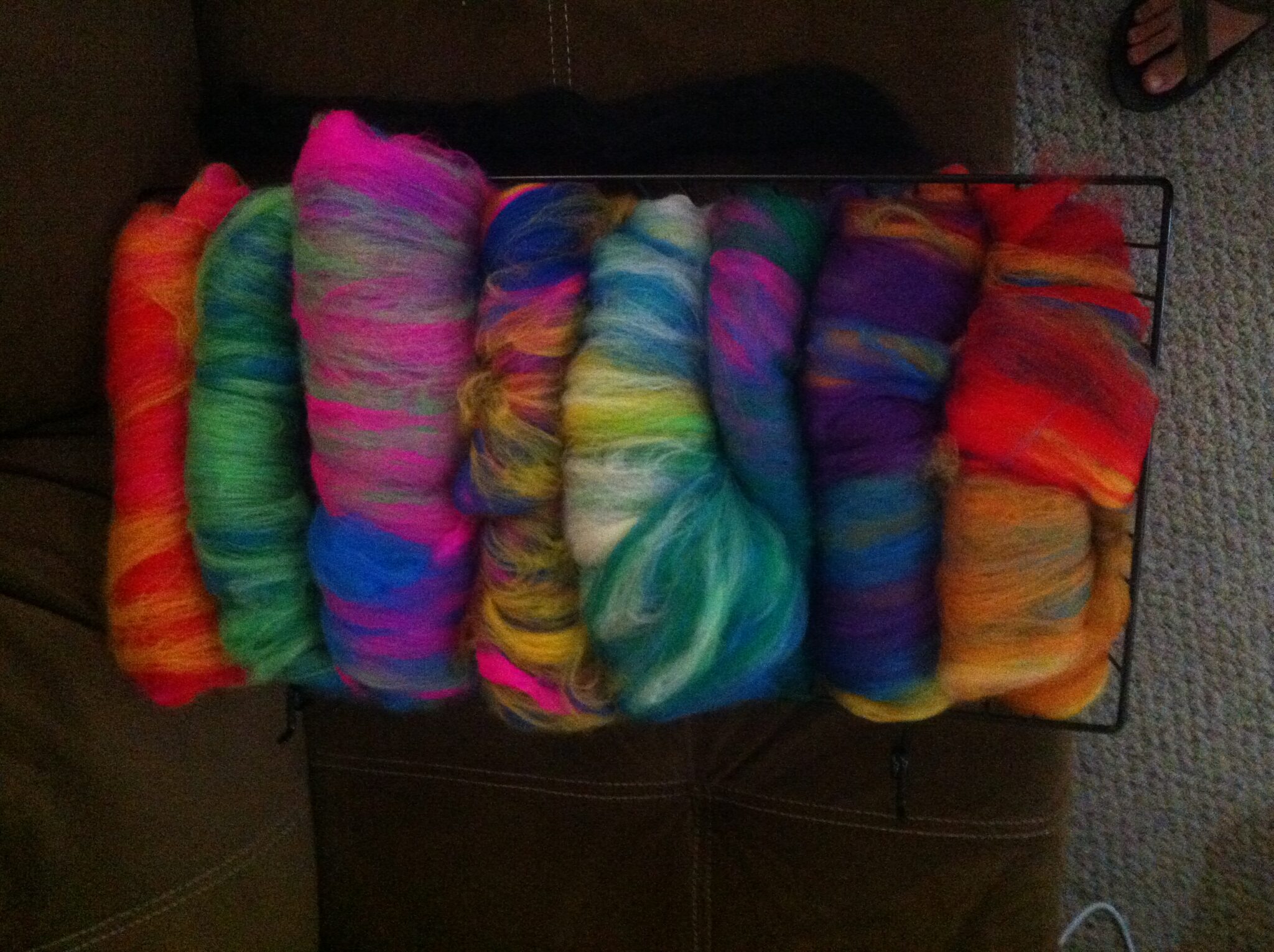 Here are several of the carded batts I made. Lots of Spring colors and rainbow batts!