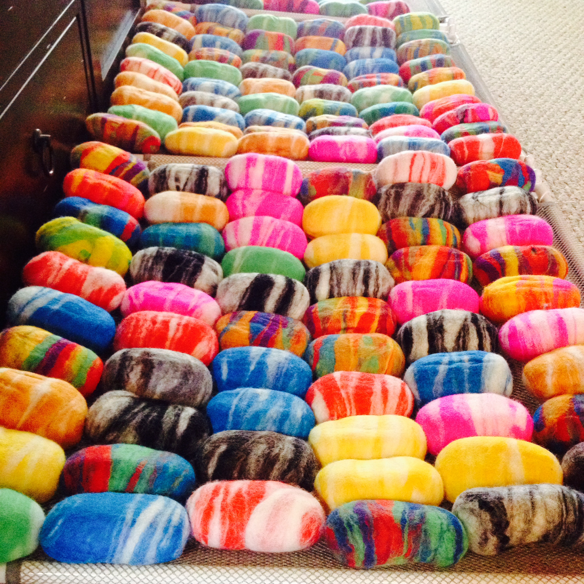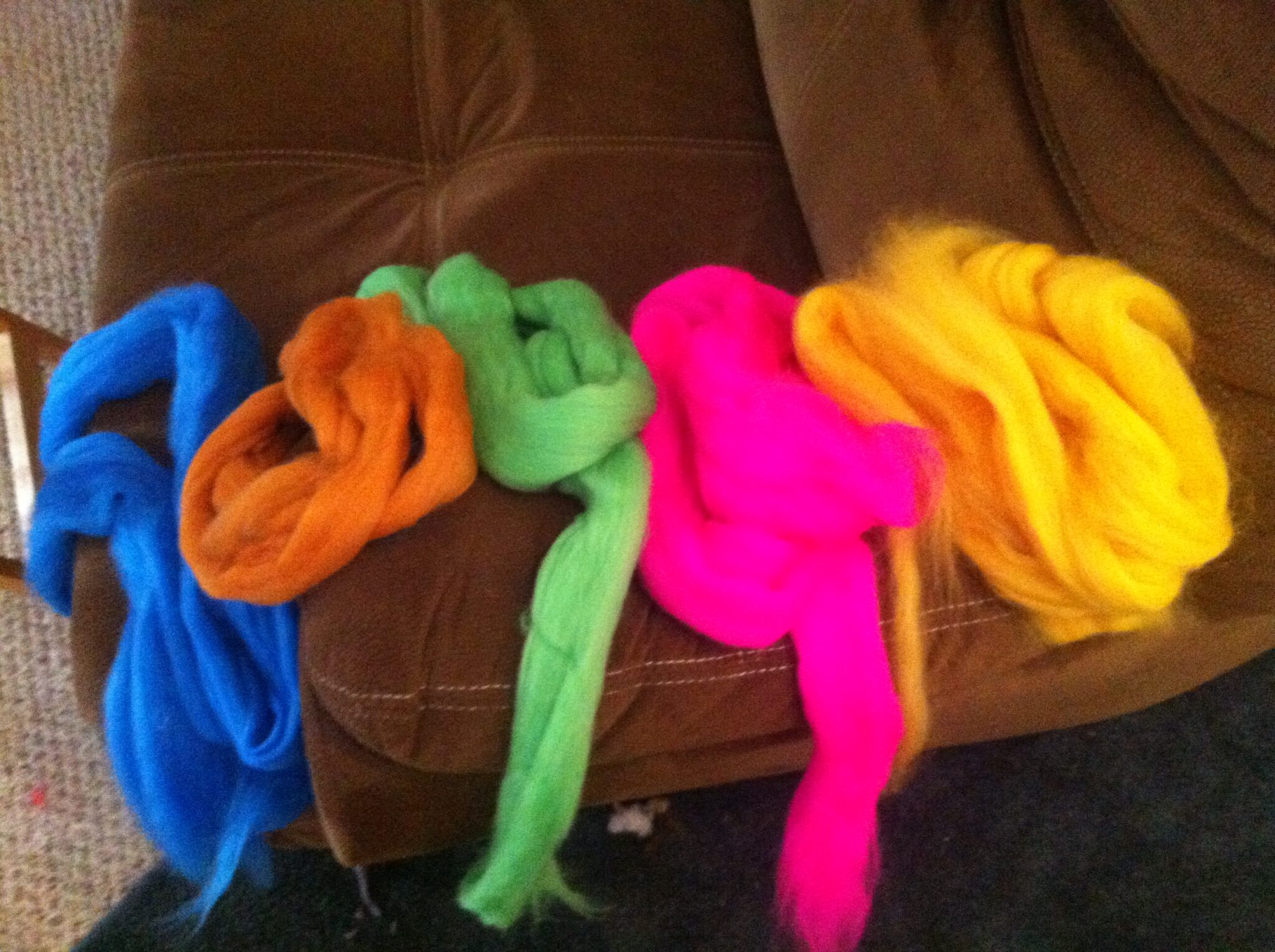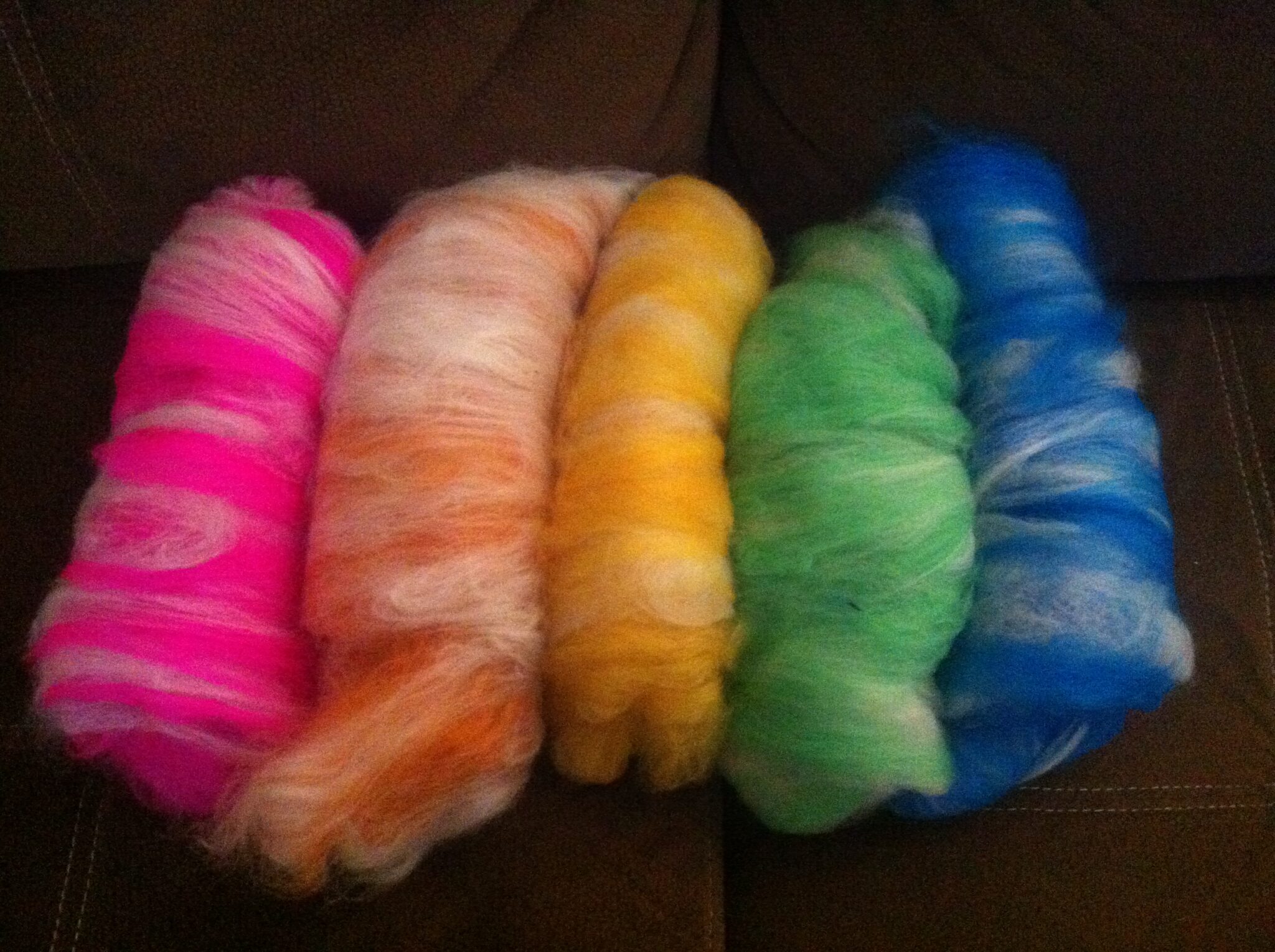 These were my favorite carded batts. I took these solid colors of bright fiber and added in white to make some really pretty pastel soaps.