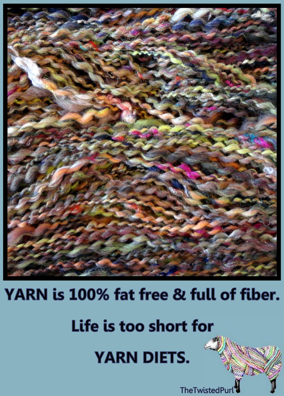 Yarn Diet? No way!!!By The Twisted Purl There has been recent talk of yarn diets. I just had to say no way! Stay Strong and Carry Yarn. 😉